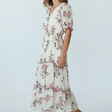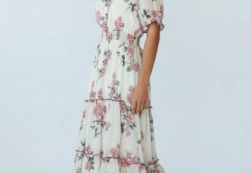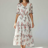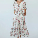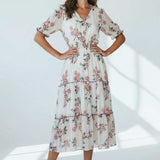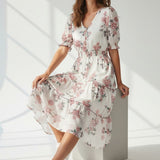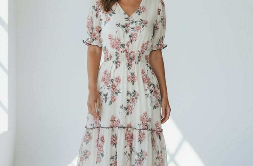 Machine Washable Length: Approx 130cm V-Neckline, Shirred Waistline, Button Down Detail