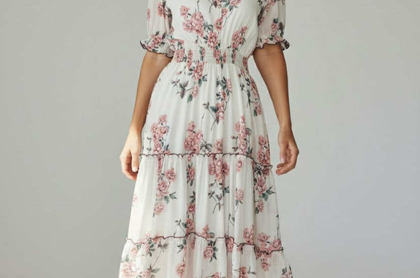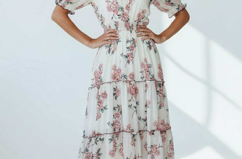 Royal Sage & Roses Dress