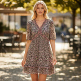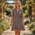 Chiếc váy mini xinh xắn này là lựa chọn hoàn hảo cho những ngày ấm áp. Mềm mại và dễ thương, váy xếp tầng với viền bèo nhún, cổ chữ V và tay bồng. Kết hợp với giày thể thao để có một bộ trang phục hoàn hảo cho kế hoạch cuối tuần của bạn.