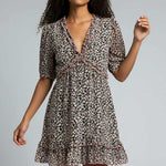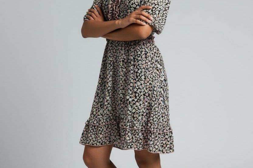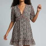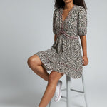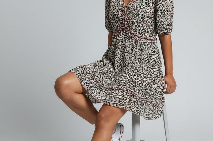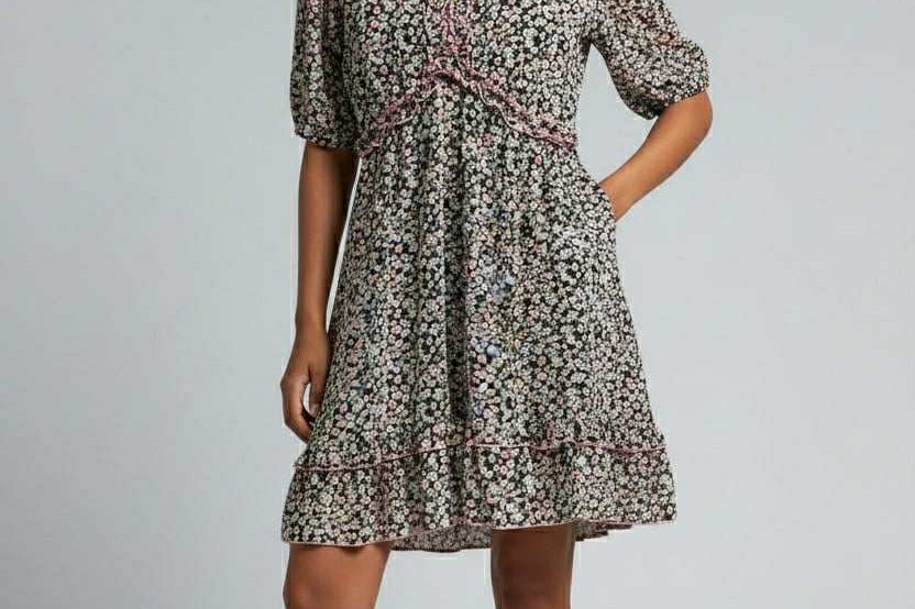 Sweet with a touch of flirt, the Poppy Bloom Mini pairs a ditsy floral print with ruffled edges and a gently flared hem. Puff sleeves and a curved empire seam complete the ultra-feminine silhouette you’ll wear on repeat.