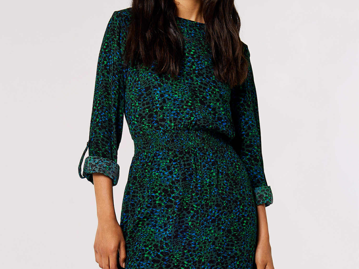 Crafted from a soft and lightweight fabric, this striking mini dress boasts a bold animal print in a neutral hue. A zip runs down the back for easy dressing, while the ruffled waist creates a flattering yet comfortable silhouette. Pair with ankle boots and throw on a cardigan for cooler weather.