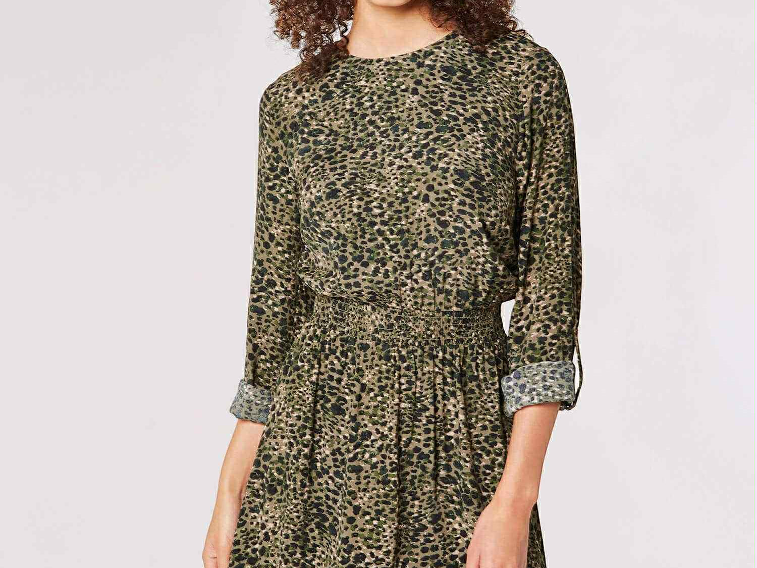 Được may từ chất liệu vải mềm mại và nhẹ nhàng, chiếc váy ngắn nổi bật này tự hào với họa tiết động vật táo bạo trên nền gam màu trung tính. Khóa kéo chạy dọc thân sau giúp bạn dễ dàng mặc vào, cùng phần eo nhún bèo tạo nên vóc dáng vừa thanh thoát vừa thoải mái. Hãy kết hợp với bốt cổ ngắn và khoác thêm áo cardigan bên ngoài khi thời tiết se lạnh.