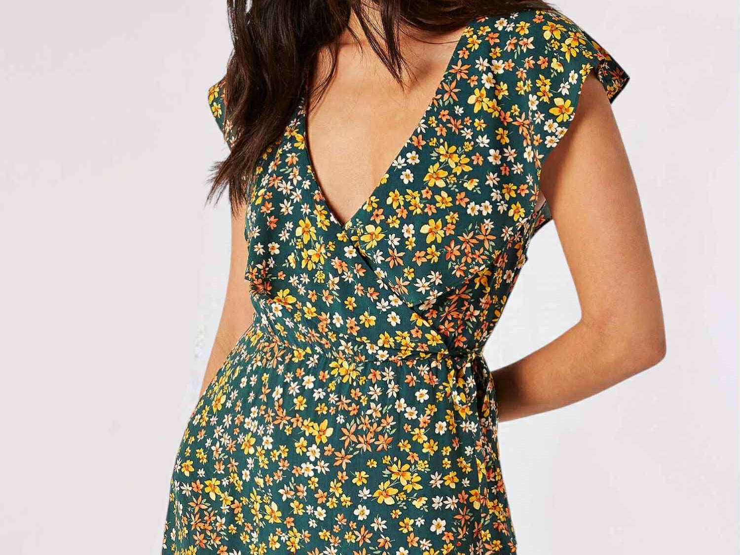Chiếc váy midi in hoa này là lựa chọn hoàn hảo cho những dịp đặc biệt. Nhẹ nhàng và được dệt thủ công, chiếc váy có thiết kế quấn tôn dáng với cổ chữ V khoét sâu, eo chun có dây buộc tạo nên sự vừa vặn thoải mái mà vẫn nổi bật, và chân váy xòe bồng bềnh. Váy được hoàn thiện với gấu váy cao thấp tạo cảm giác uyển chuyển. Kết hợp cùng sandal cao gót để tạo điểm nhấn tinh tế.