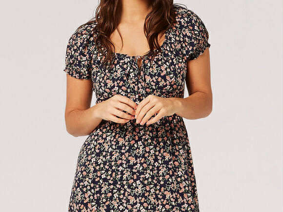 Refresh your dress collection with this sunshine-ready floral ditsy mini. Framed by a squared neckline and pretty puff sleeves, it boasts a smocked waistband for a comfortable and defining fit. Throw on and go with trainers to embrace the art of effortless dressing.