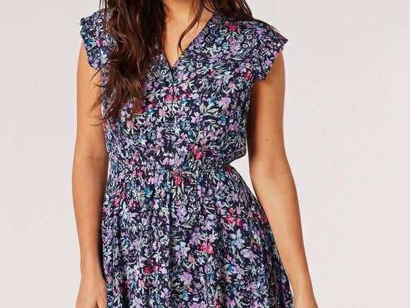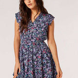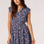 Fresh florals meet flirty movement in the Bloomside Day Min . Featuring soft flutter sleeves, a button-up front, and a stretchy cinched waist, this mini dress offers a comfortable yet flattering fit. The vibrant floral print adds a pop of fun, making it the perfect piece for warm days, casual dates, or weekends out and about.