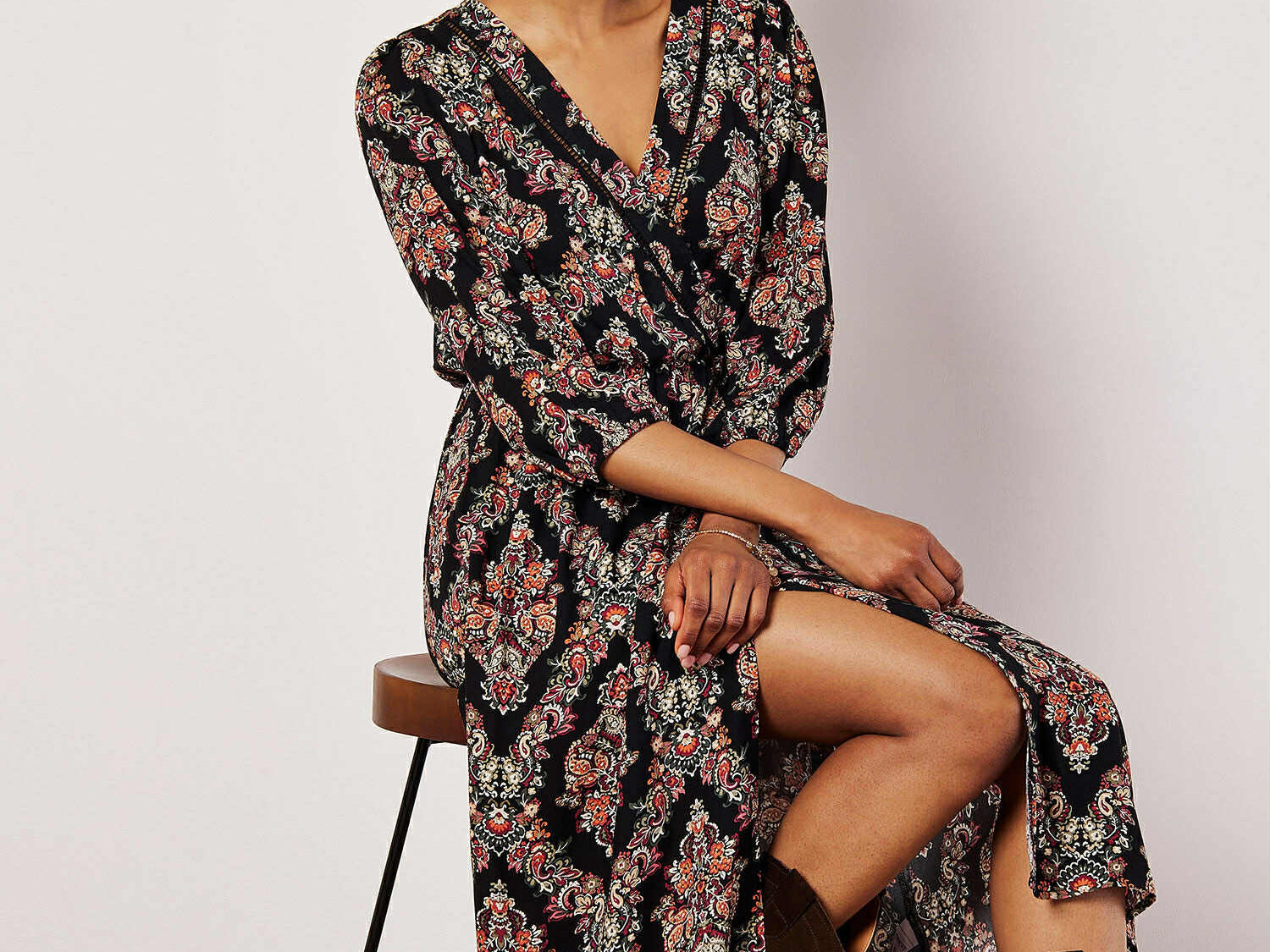 Elegant with a bohemian twist — the Vintage Paisley Wrap Dress features a classic wrap silhouette that defines the waist and flatters every curve. The bold paisley pattern adds a rich, vintage-inspired touch, while the midi length makes it perfect for both dressed-up moments and everyday outings. Effortless, feminine, and gracefully timeless.