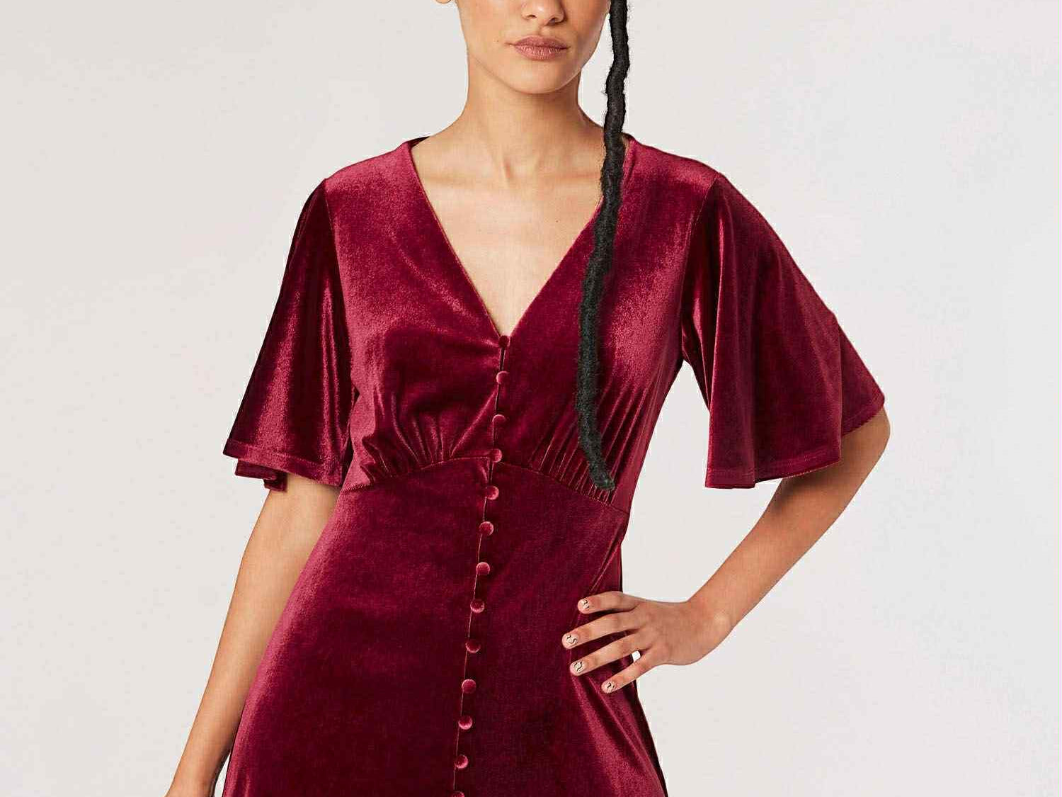 Nâng tầm tủ đồ của bạn với chiếc váy nhung vượt thời gian này. Với kiểu dáng chữ A tôn dáng, váy có cổ chữ V khoét sâu, cài nút phía trước và tay áo dáng chữ A. Hãy thể hiện phong cách thanh lịch tự nhiên, chỉ cần kết hợp cùng giày cao gót và ví cầm tay.