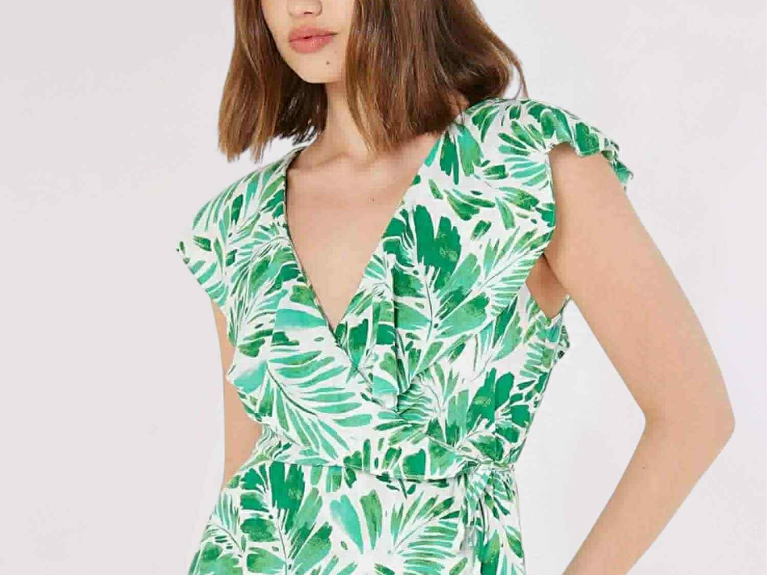 Chiếc váy midi in hoa này là lựa chọn hoàn hảo cho những dịp đặc biệt. Nhẹ nhàng và được dệt thủ công, chiếc váy có thiết kế quấn tôn dáng với cổ chữ V khoét sâu, eo chun có dây buộc tạo nên sự vừa vặn thoải mái mà vẫn nổi bật, và chân váy xòe bồng bềnh. Váy được hoàn thiện với gấu váy cao thấp tạo cảm giác uyển chuyển. Kết hợp cùng sandal cao gót để tạo điểm nhấn tinh tế.