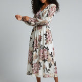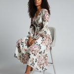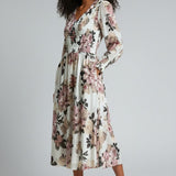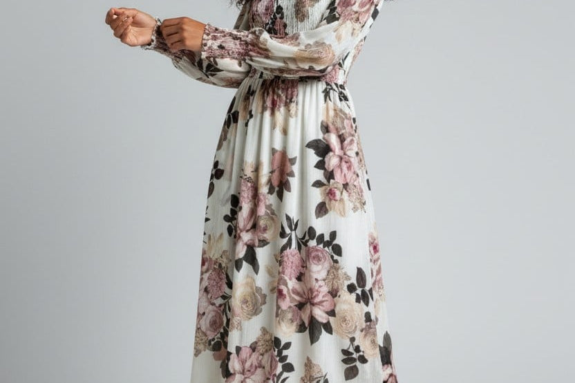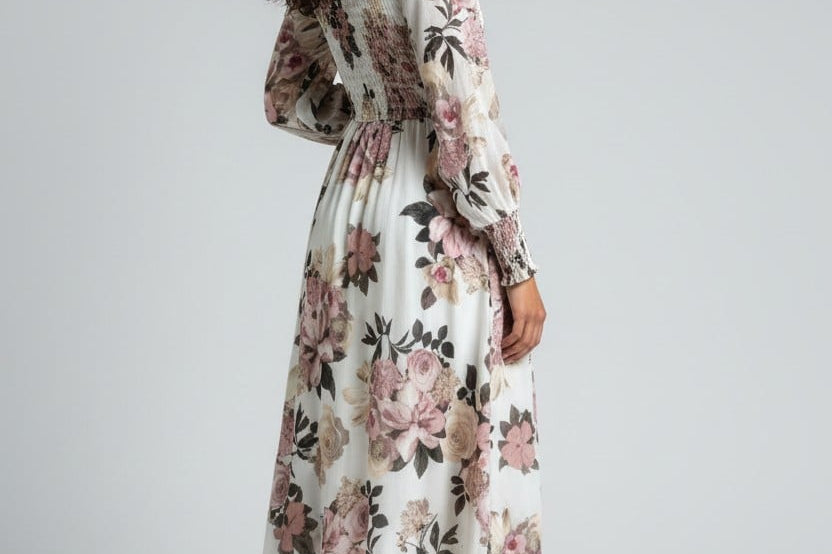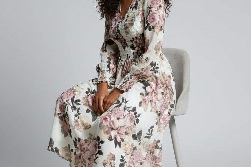 Soft romance meets effortless elegance in the Rosa Luxe Dress Dress. Crafted in a dreamy cream base with oversized rose-toned florals, this midi brings a fresh yet timeless feel to any moment. The smocked bodice adds a flattering, comfortable fit, while the flowy skirt drapes with graceful movement. Long sleeves with gathered cuffs add a refined touch, making it perfect for brunch dates, garden parties, or any day you want to feel beautifully put-together without trying too hard.