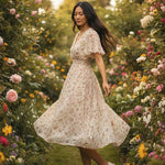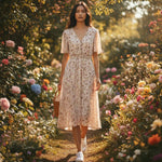 Hãy tỏa sáng trong sắc hoa rực rỡ của mùa này với Chiếc váy midi thanh lịch của chúng tôi. Được làm từ chất liệu vải mềm mại, mát mẻ, Chiếc váy tôn phong cách này được điểm xuyết chi tiết miếng bèo, giúp vòng eo thon gọn, bồng bềnh. Kết hợp phong cách thời trang vượt thời gian với cổ chữ V thanh lịch và tay ngắn xòe, chiếc váy này là lựa chọn hoàn hảo cho một ngày hè. Hãy kết hợp chiếc váy này với giày cao gót đế dày để có một ngày thật sang trọng!