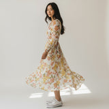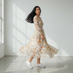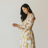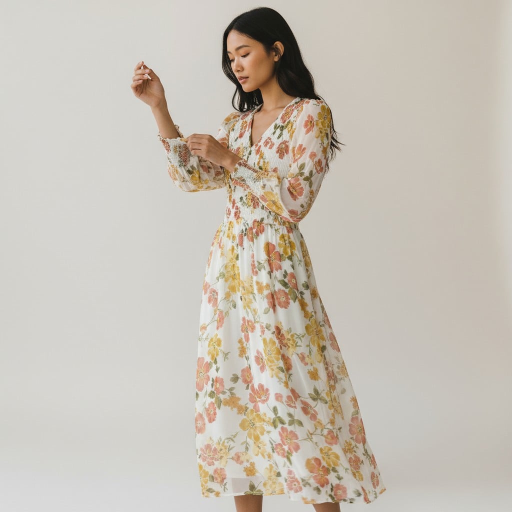 This midi dress is the perfect pick for all your weekend plans. Crafted from lightweight chiffon and lined for comfort, it boasts a smocked bodice for a defining fit, semi-sheer balloon sleeves, and a skirt that falls in gentle tiers. Pair with heels and a sparkly clutch to complete the look.